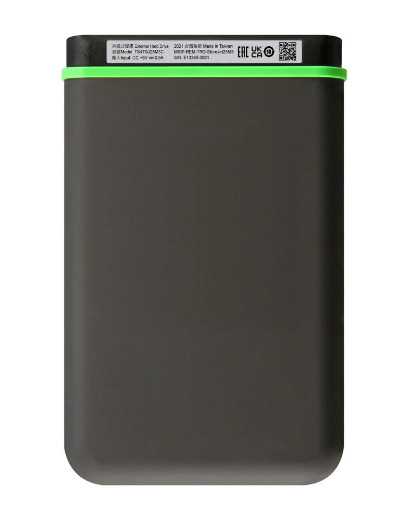 - Ổ cứng di động StoreJet 25M3C được thiết kế với độ bền cao, giúp bạn lưu trữ và chia sẻ dữ liệu mọi lúc, mọi nơi mà không lo hư hỏng do va đập.