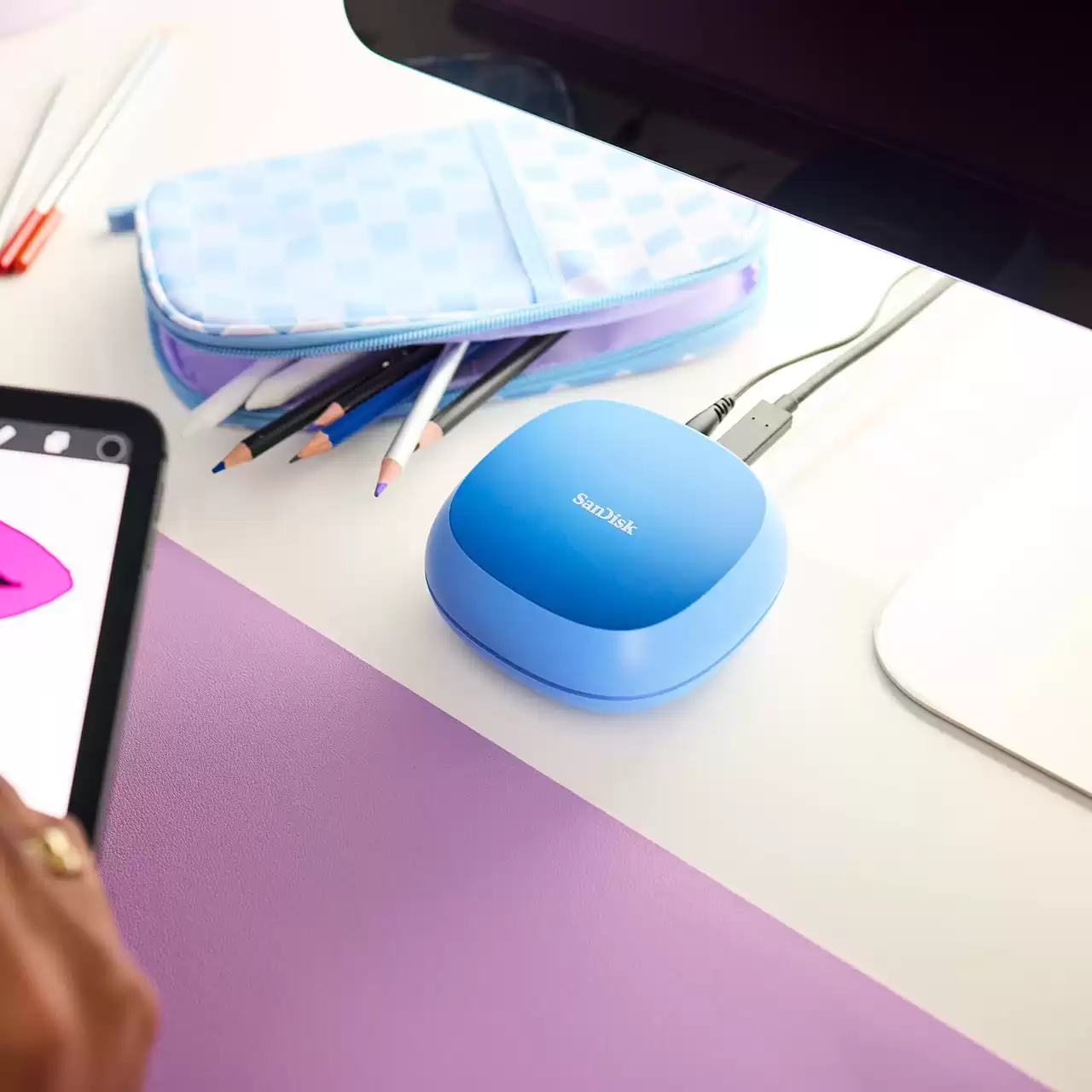 Tăng tốc quy trình làm việc của bạn với SanDisk Creator Desk Drive, ổ SSD để bàn được thiết kế như một trung tâm lưu trữ nhỏ gọn nhưng mạnh mẽ cho toàn bộ nội dung sáng tạo.