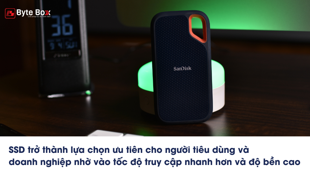 Trong những năm gần đây, SSD đã trở thành lựa chọn ưu tiên cho người tiêu dùng và doanh nghiệp nhờ vào tốc độ truy cập nhanh hơn và độ bền cao hơn so với HDD. Xu hướng chuyển đổi này được dự đoán sẽ tiếp tục gia tăng, với thị phần của SSD dự kiến sẽ chiếm hơn 50% trong các thiết bị lưu trữ vào năm 2025.