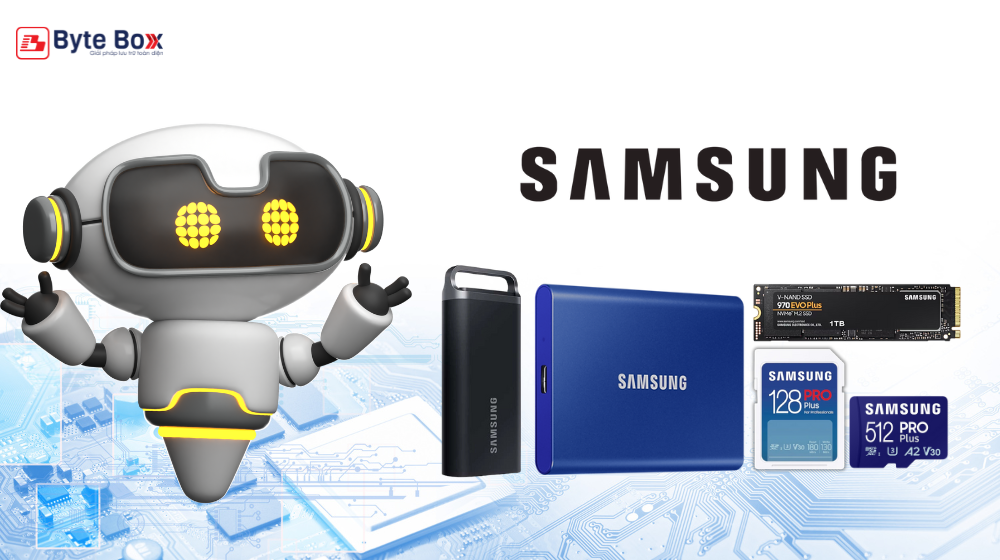 Samsung nổi bật với các sản phẩm SSD, đặc biệt là dòng Samsung 970 Evo, được biết đến với hiệu suất vượt trội và độ bền cao. Samsung không ngừng đổi mới công nghệ, áp dụng NAND 3D để cải thiện dung lượng và tốc độ.