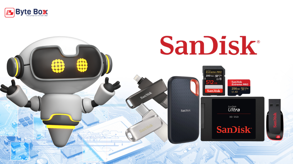 SanDisk, thuộc sở hữu của Western Digital, chuyên cung cấp thẻ nhớ và ổ USB. Sản phẩm của SanDisk nổi tiếng với tính di động và khả năng lưu trữ cao, đáp ứng nhu cầu của người tiêu dùng cá nhân và doanh nghiệp.